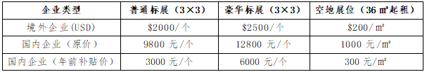 2、双面开口标准展位角位费:国内企业RMB500元/个,外资企业加收10%;